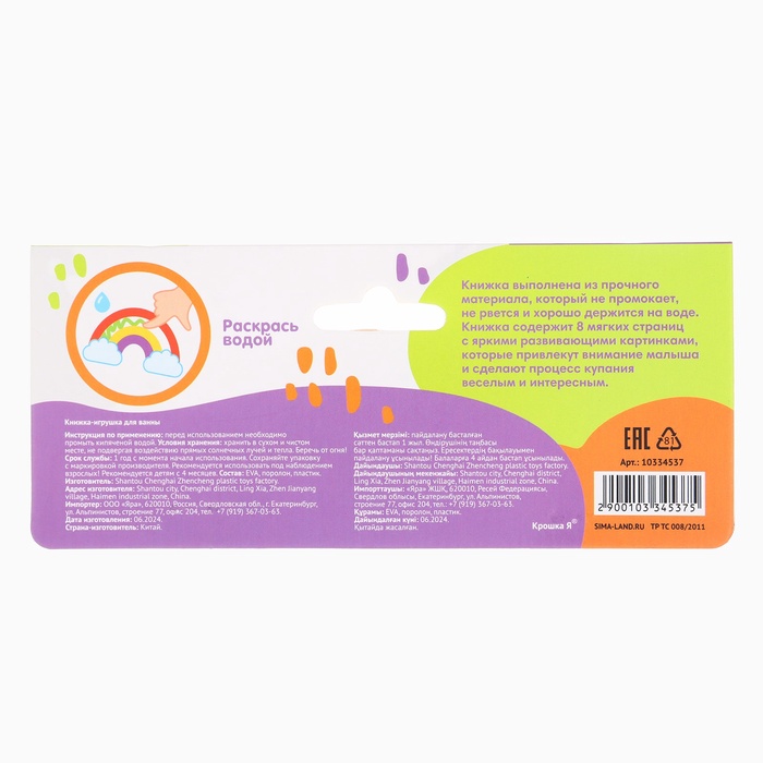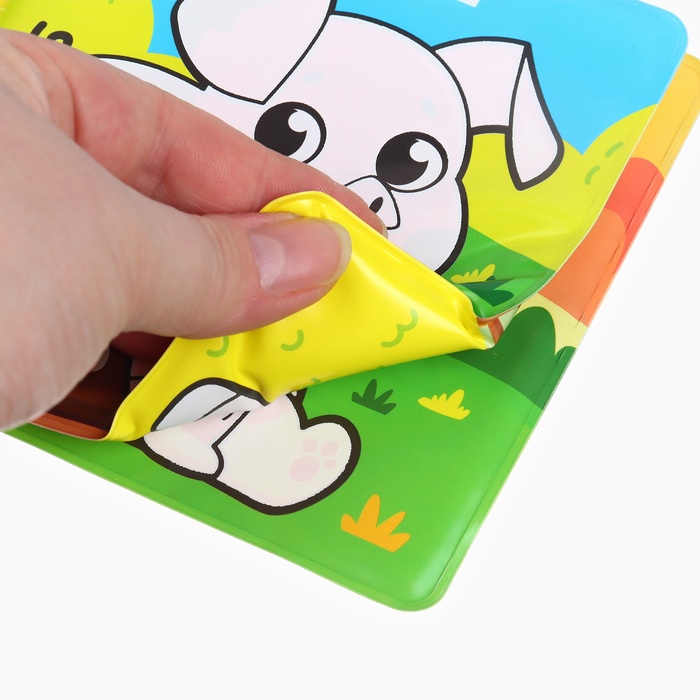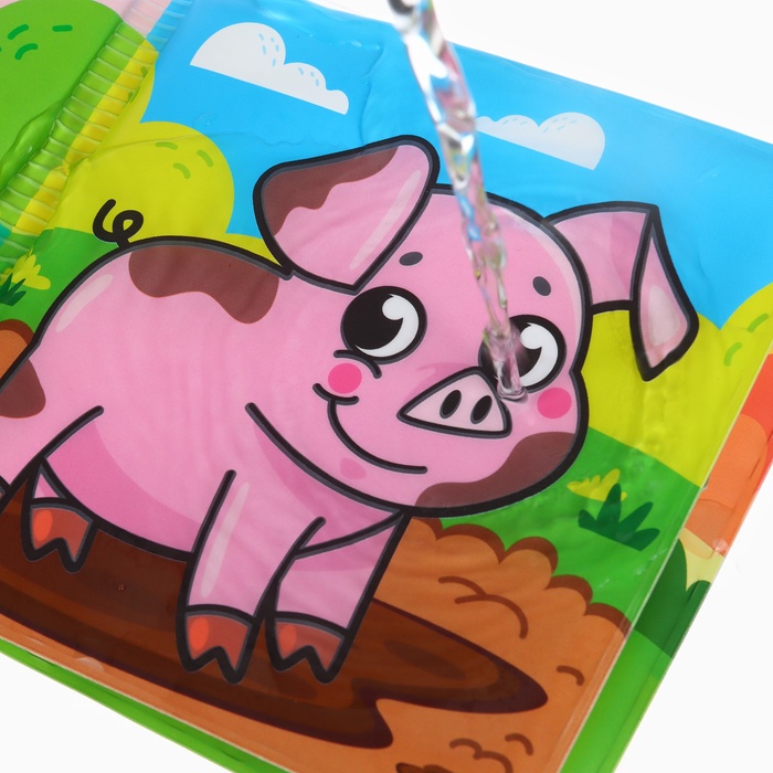 - Книжка выполнена из безопасного материала, который не разрушается под воздействием воды. Она плавает на поверхности, что делает процесс игры комфортным и безопасным для малыша.
