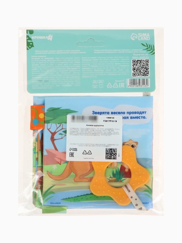Технические характеристики Книжка - шуршалка с прорезывателем «Животные Африки», Крошка Я