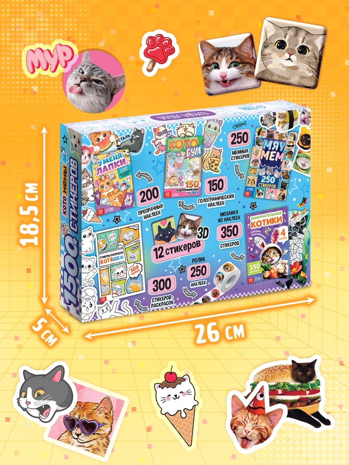 Книжное комплектное издание «Котомемы. 1500 стикеров», 5 книг, ролик, 3д стикеры