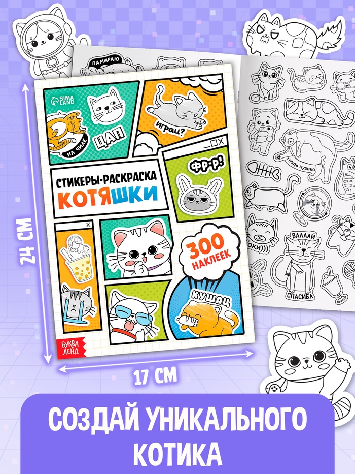 Технические характеристики Книжное комплектное издание «Котомемы. 1500 стикеров», 5 книг, ролик, 3д стикеры