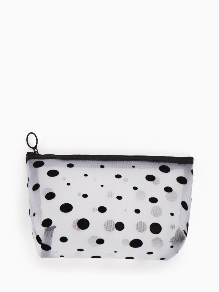 Косметичка DOTs, с рисунком, сетка, на молнии, белая