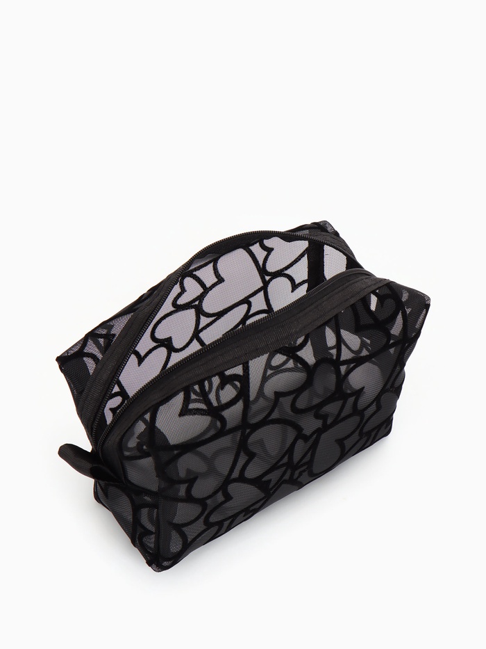 Технические характеристики Косметичка квадратная Black beauty, с рисунком, на молнии, чёрная
