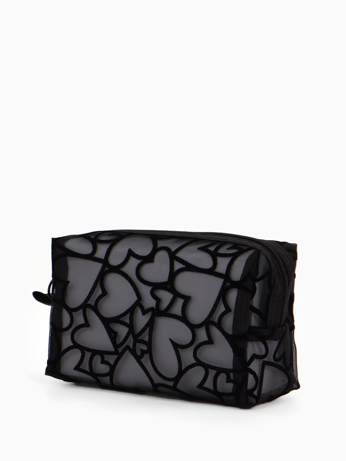 Косметичка квадратная Black beauty, с рисунком, на молнии, чёрная