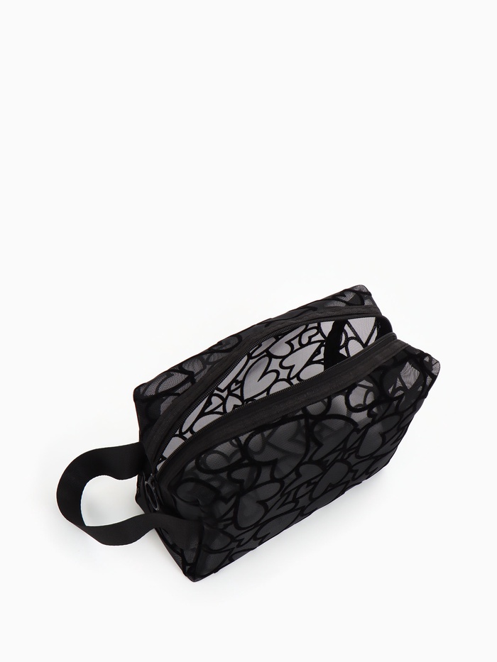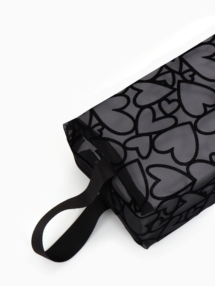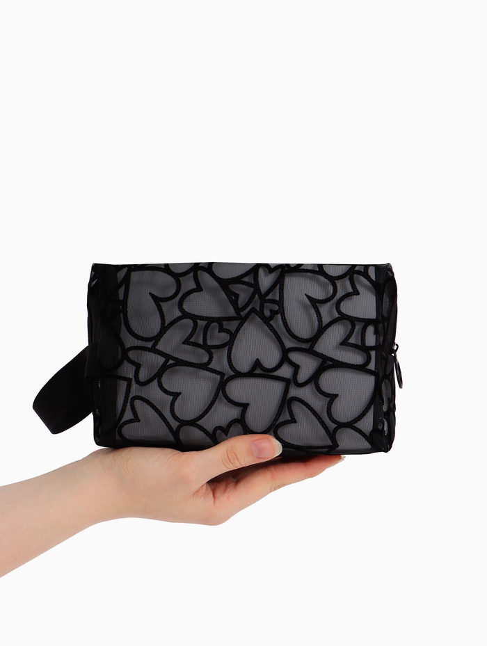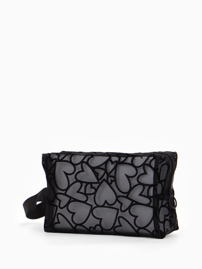 - Косметичка украшена изящным рисунком в виде сердца, что делает её полноценным акцентом вашего образа.