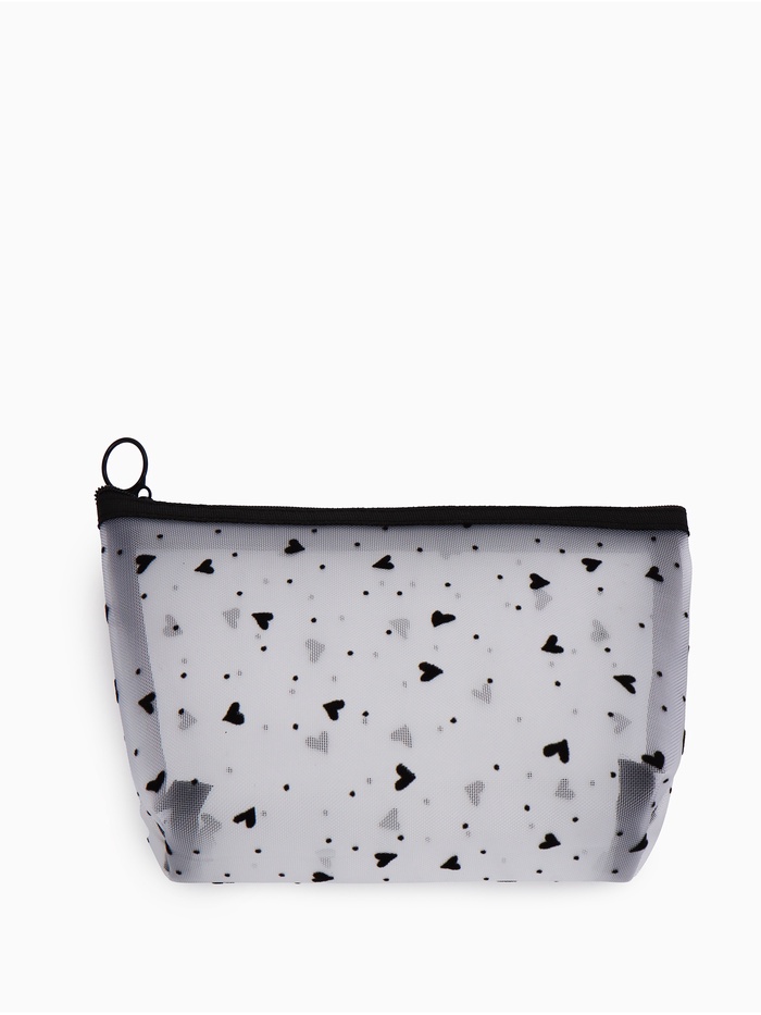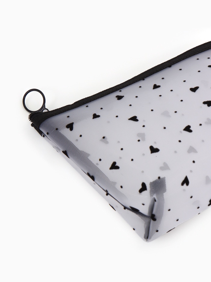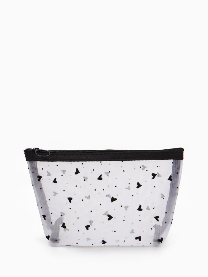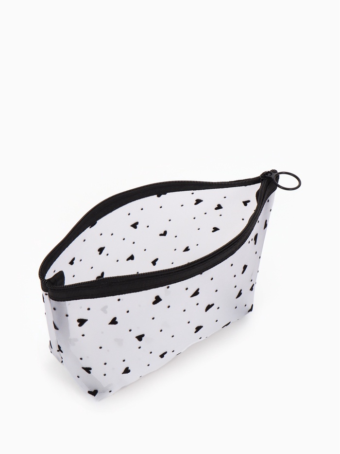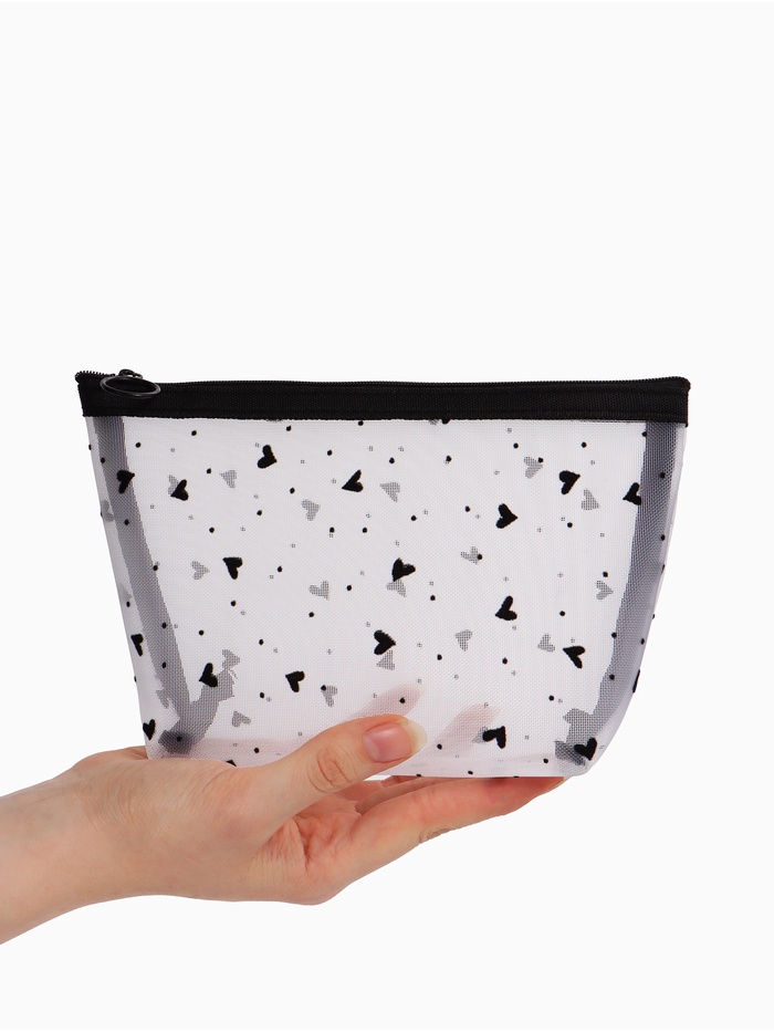 Ищете стильную и практичную косметичку? Представляем мини сумочку с оригинальным принтом! Эта небольшая белая сетчатая сумочка на молнии внесёт яркость и свободу выбора в ваш день. Идеальна как для женщин, так и для девочек. Изображение сердца на поверхности добавляет элемент "любви" к вашему повседневному стилю.