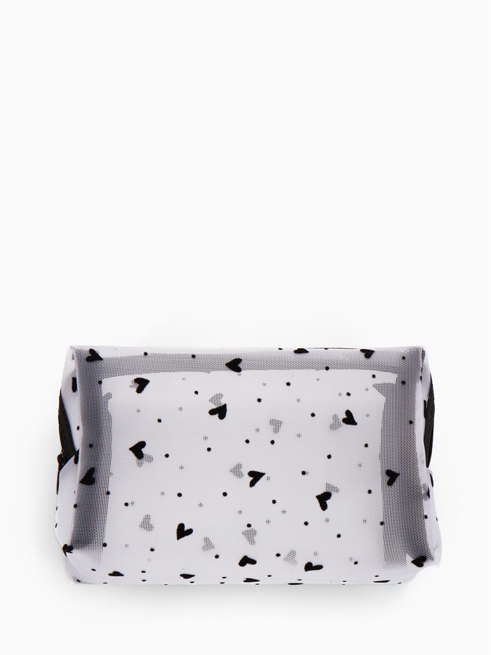 Технические характеристики Косметичка женская HEARTS, с рисунком, сетка, на молнии, белая