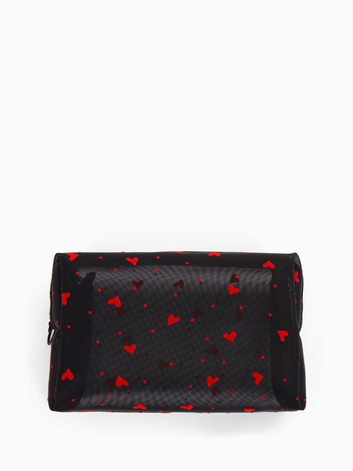 Технические характеристики Косметичка женская HEARTS, с рисунком, сетка, на молнии, чёрная