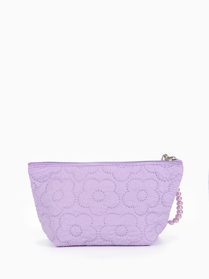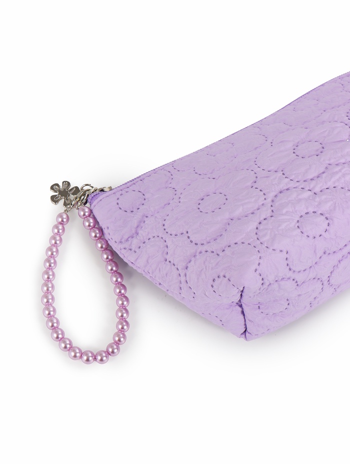 Косметичка женская «Цветочки», на молнии, ручка из бусин, сиреневая