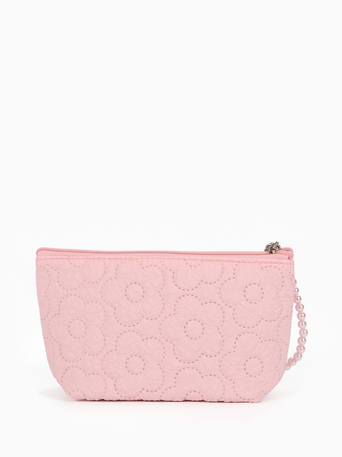 Косметичка женская «Цветочки», на молнии, ручка из бусин, розовая