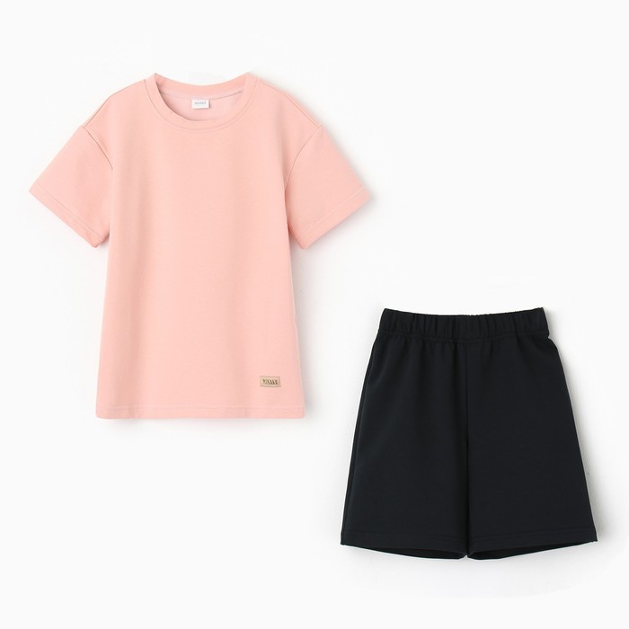 Костюм детский (футболка, шорты) MINAKU, бежевый/графит, рост 146 см