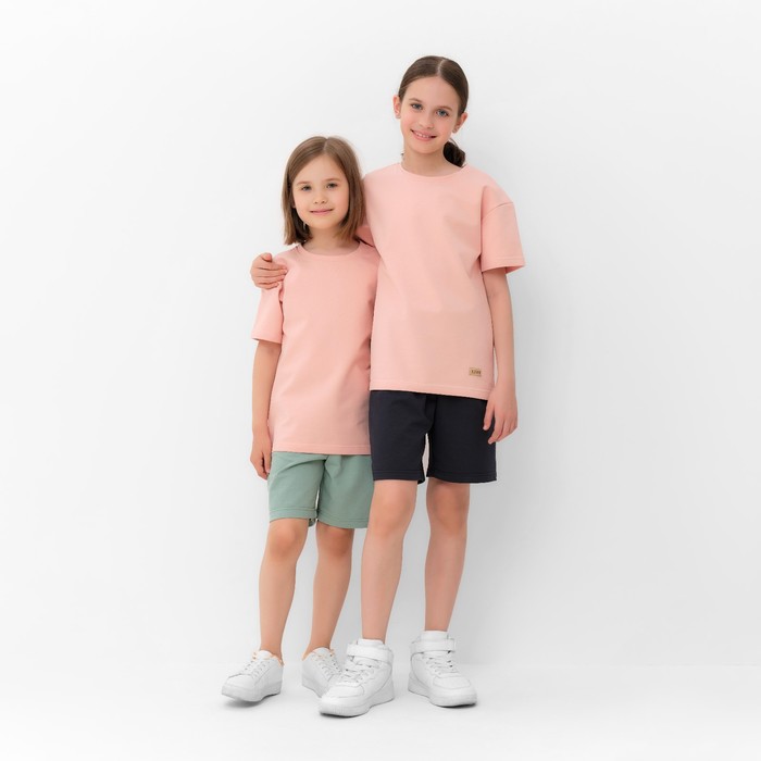 Костюм детский (футболка, шорты) MINAKU, бежевый/олива, рост 122 см