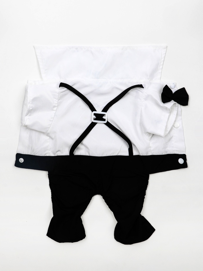 Элегантность без перегрева — даже в самый жаркий день! Костюм «Джентльмен» для собак (размер M) — лёгкий летний наряд в строгой чёрно-белой гамме, созданный для мальчиков средних мелких пород с обхватом груди до 40 см. Без подкладки, без лишнего веса — только чистая форма и свобода движений.