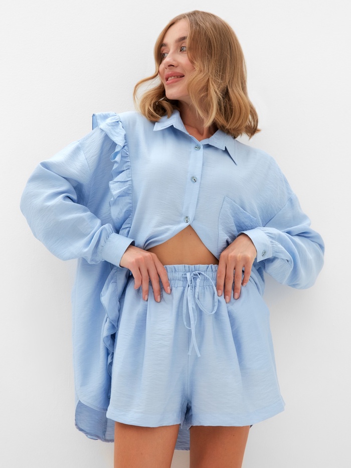 Костюм женский (блузка, шорты) MINAKU: Casual Collection, голубой, размер 42