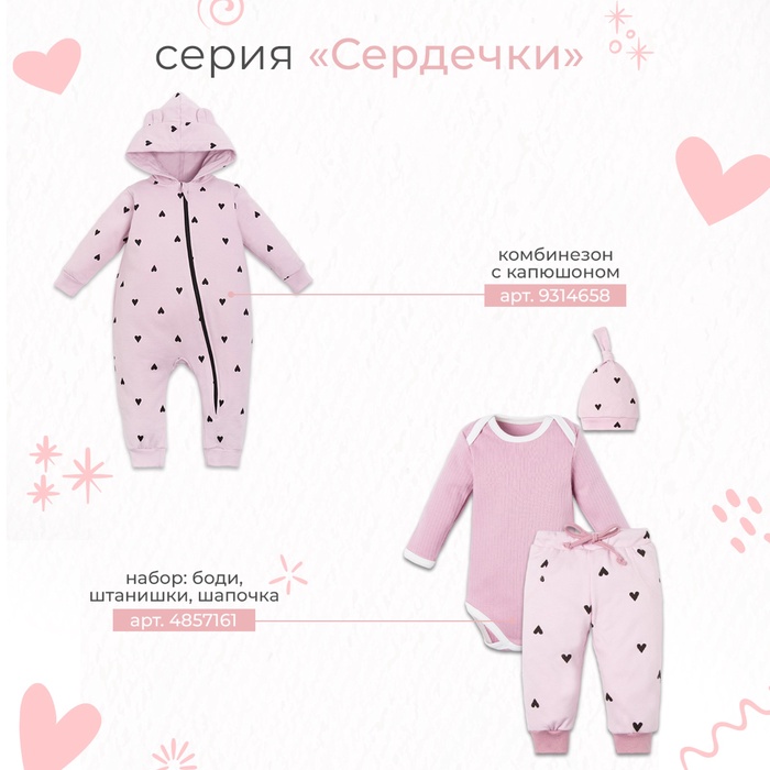 Технические характеристики Костюм: толстовка и брюки Крошка Я "Сердечки", рост 74-80 см, розовый