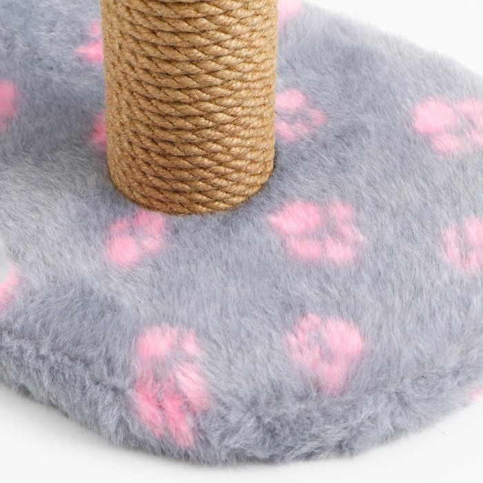Когтеточка для котят на подставке, 30 х 24 х 35 см, джут, темно серая с розовыми лапками