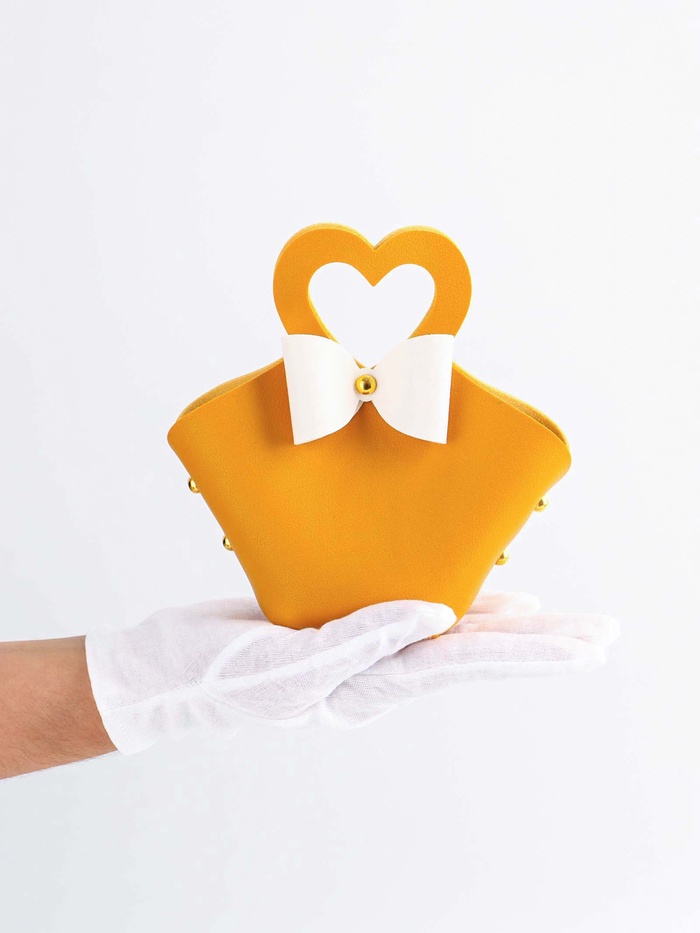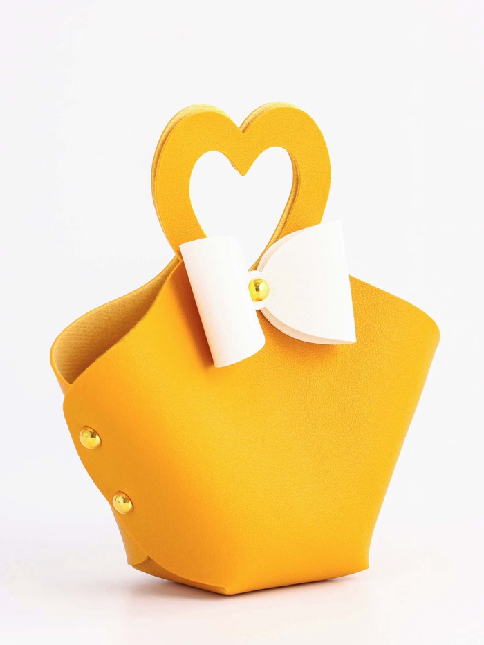 Кожанная подарочная сумочка 10,5 х 5 х 6 см желтая