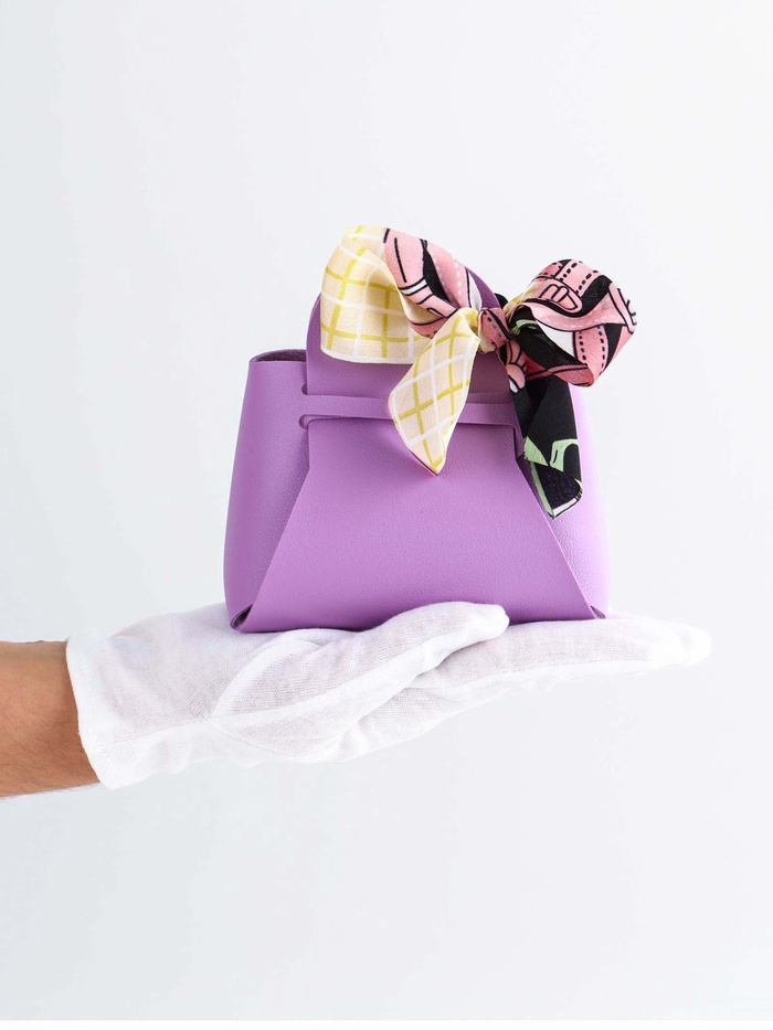 Кожанная подарочная сумочка 13 х12 х 5,5 см сиреневая