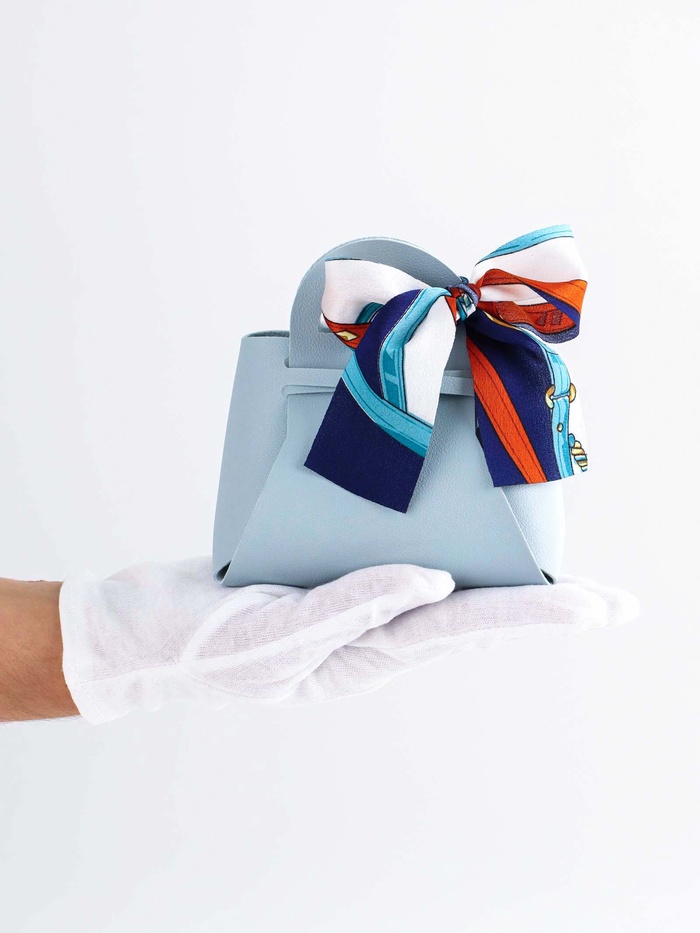 Кожанная подарочная сумочка 13 х12 х 5,5 см голубая