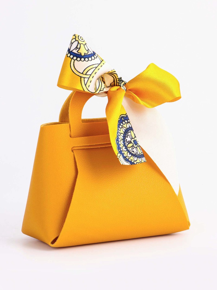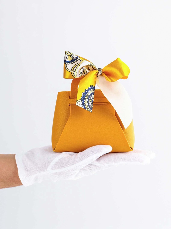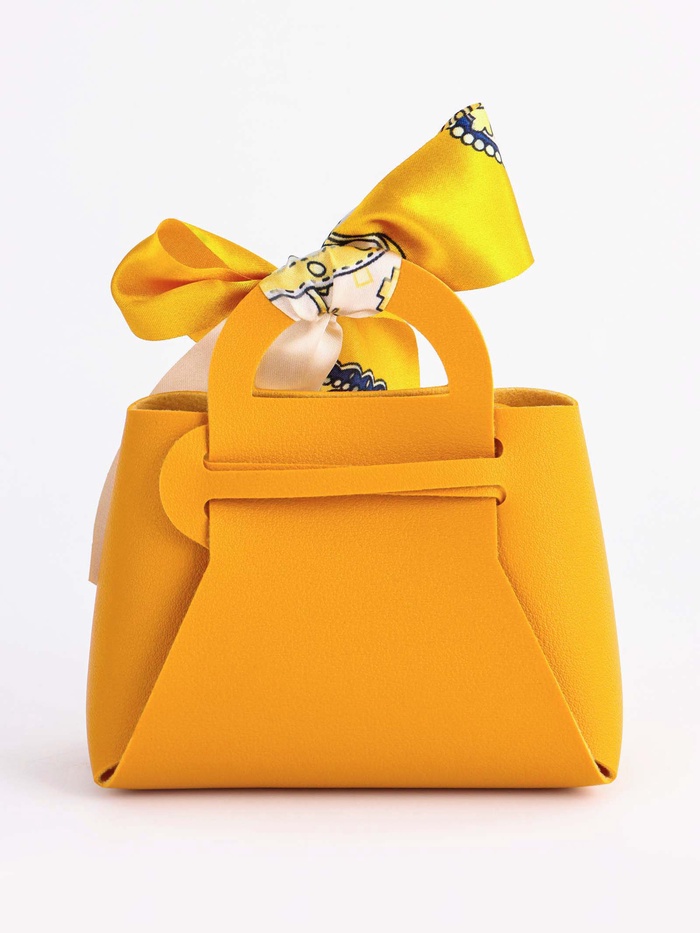Кожанная подарочная сумочка 13 х12 х 5,5 см желтая