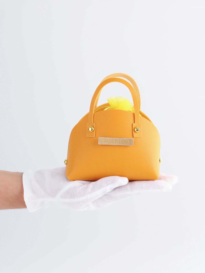 Кожанная подарочная сумочка 14 х 6,5 х 12,8 см желтая