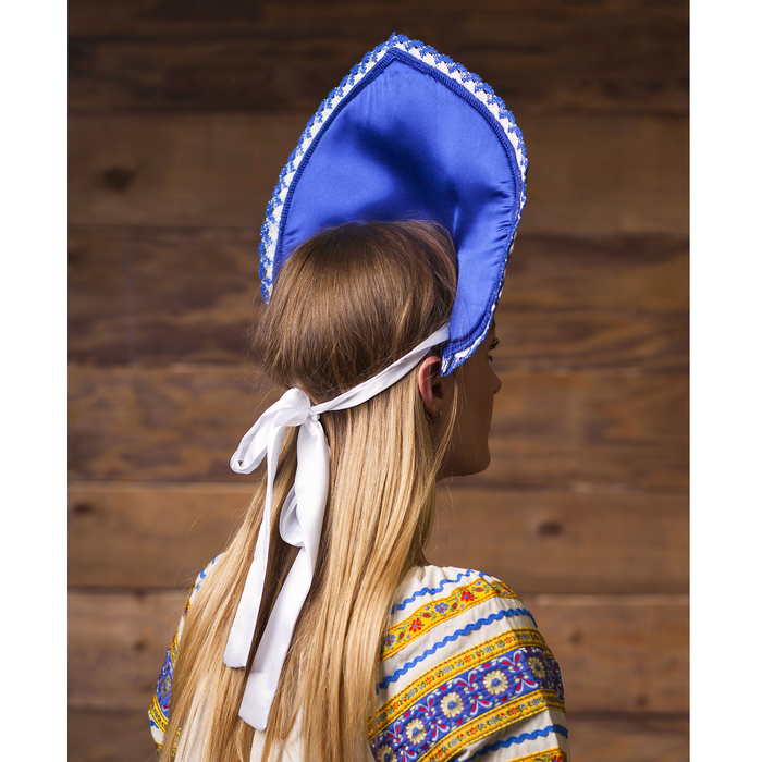 Кокошник «Жемчуг», атлас, цвет синий