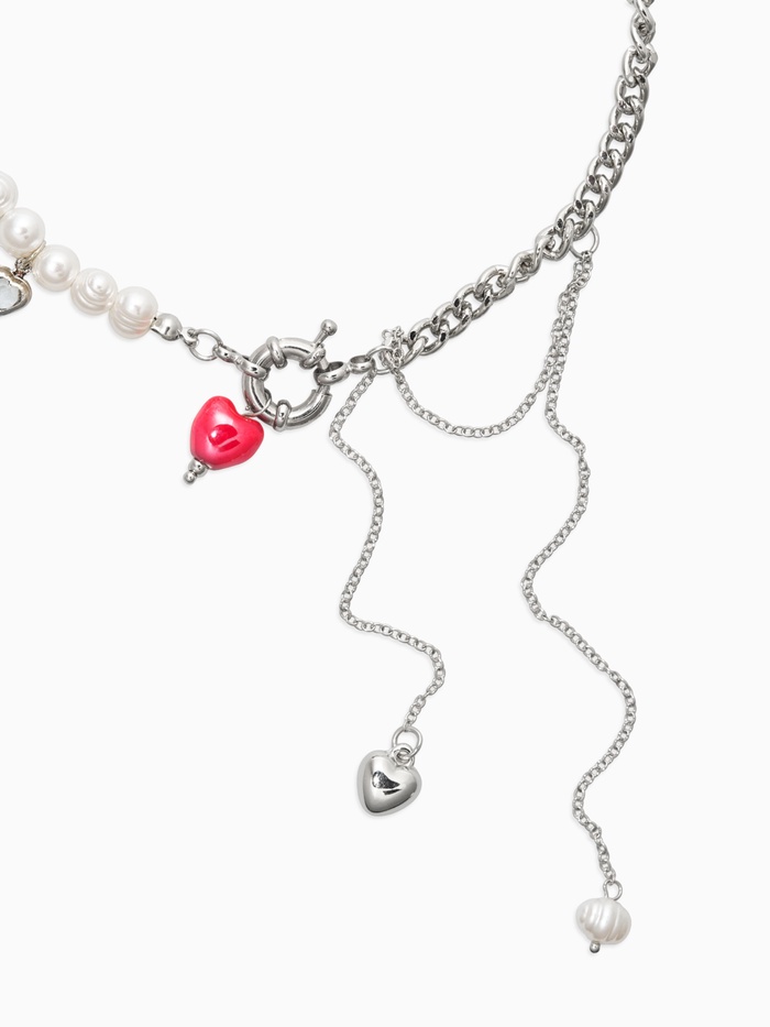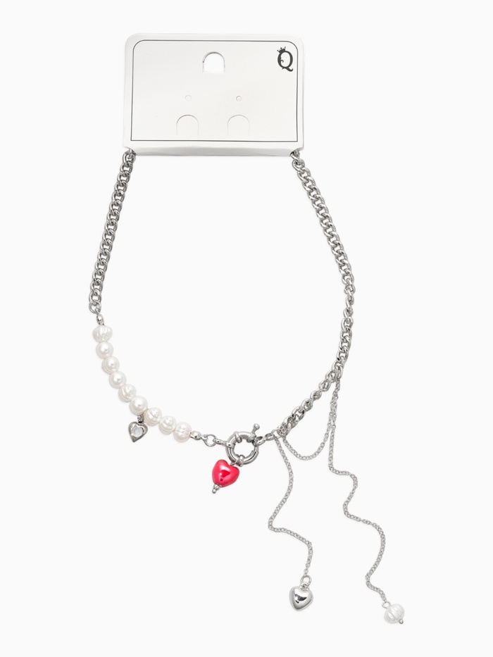 Технические характеристики Колье с подвеской на цепочке «Сердце с жемчугом», керамика, L=35 + удлинитель 5 см, белый, красный в серебре
