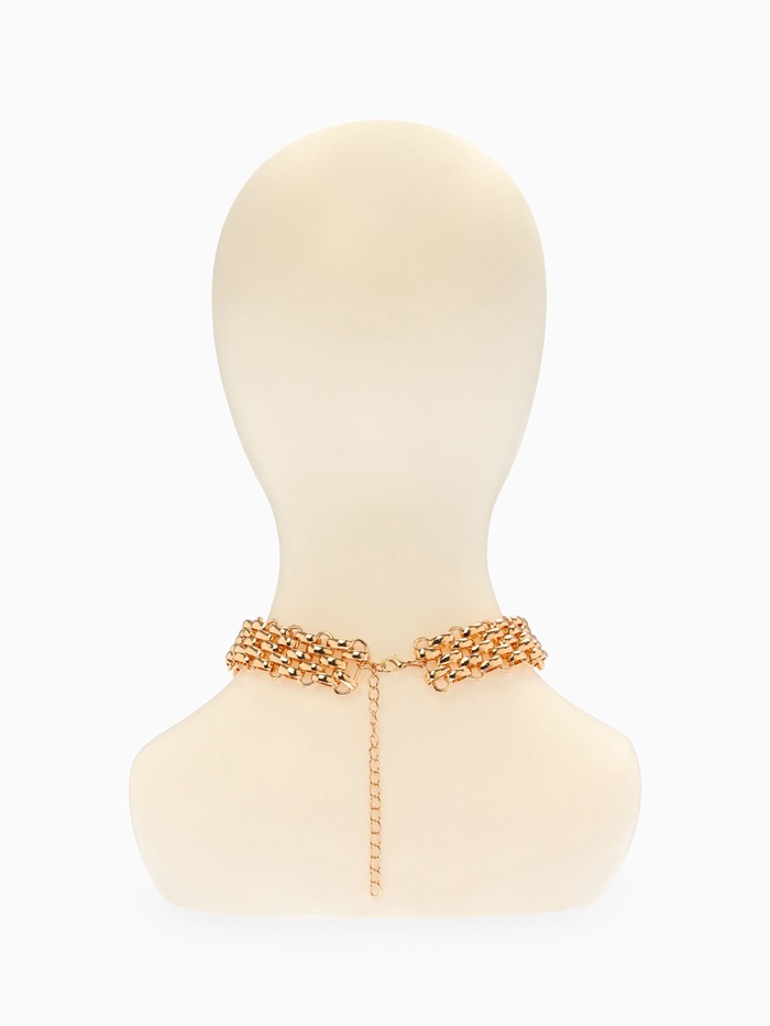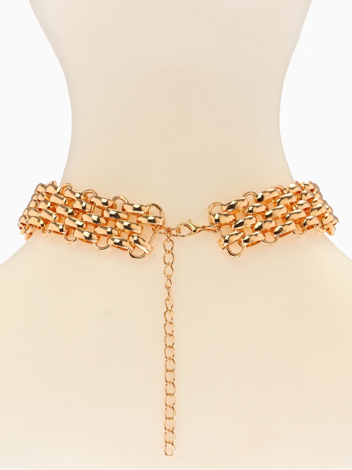 Погрузитесь в атмосферу настоящего гламура и блеска с уникальным колье-чокером, выполненном в популярном ныне стиле «кальчуга». Сделано из высококлассного металла золотистого оттенка, оно обладает превосходной прочностью и долговечностью, при этом оставляя владельца в полном комфорте и уверенности в своем образе.