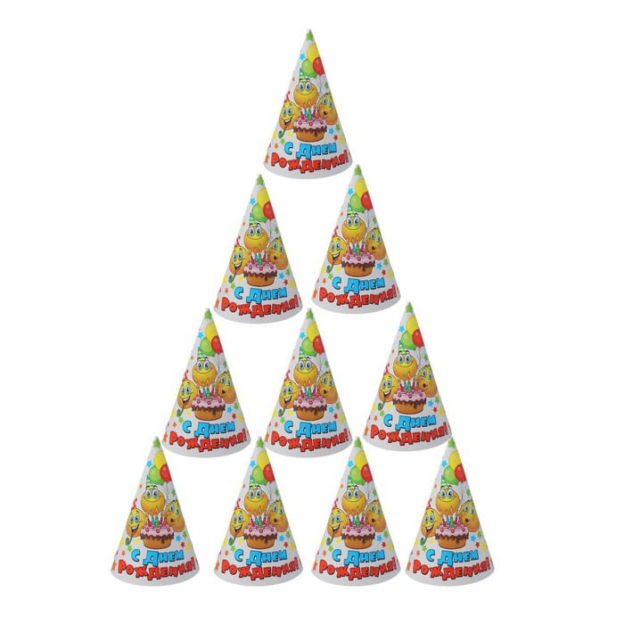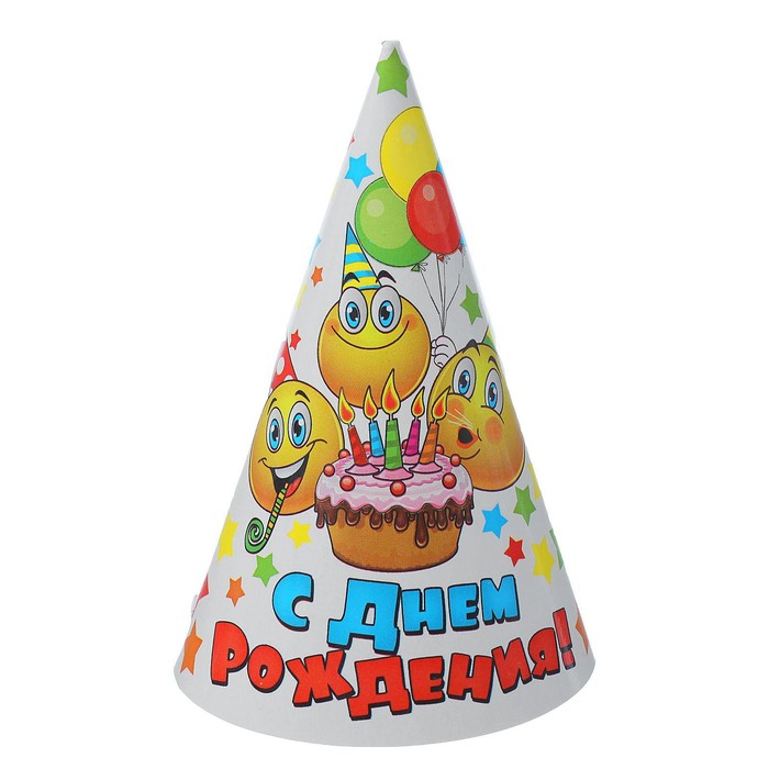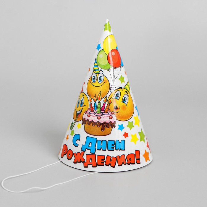Колпак праздничный бумажный «С днём рождения», смайлы и звёзды