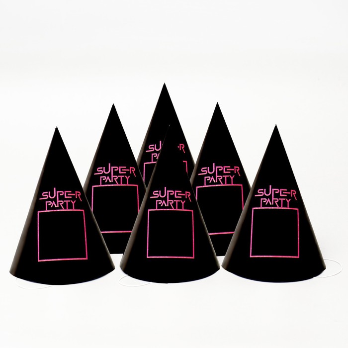 Колпак праздничный бумажный Super party, цвет чёрный