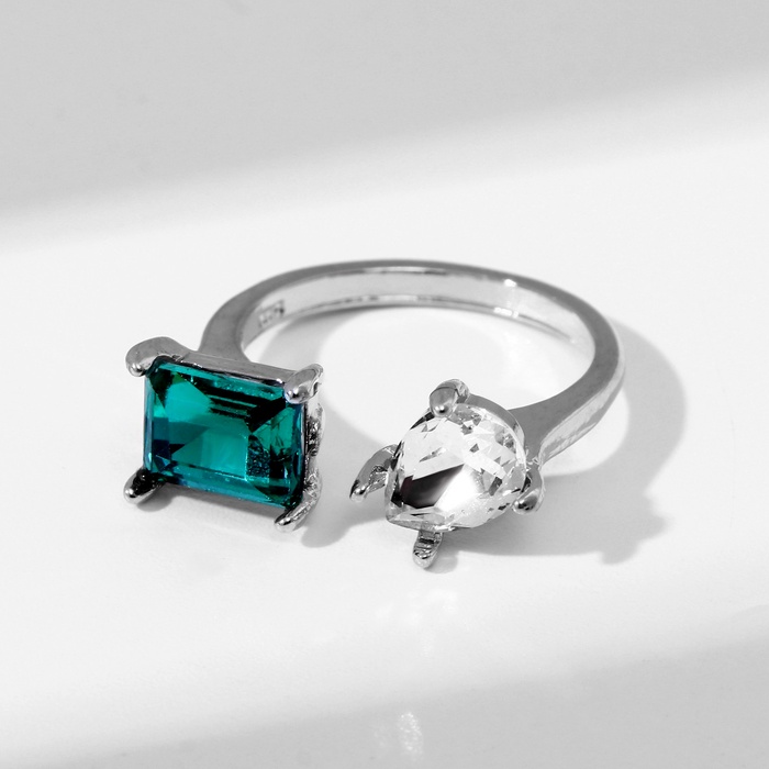Кольцо с камнями «Фигуры», безразмерное, цвет бело-изумрудный в серебре
