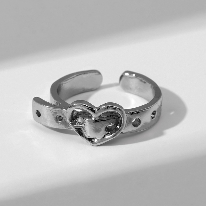 Кольцо «Сердце» ремень, цвет серебро, безразмерное