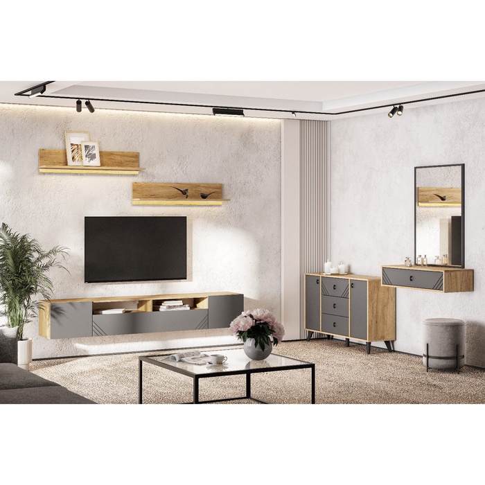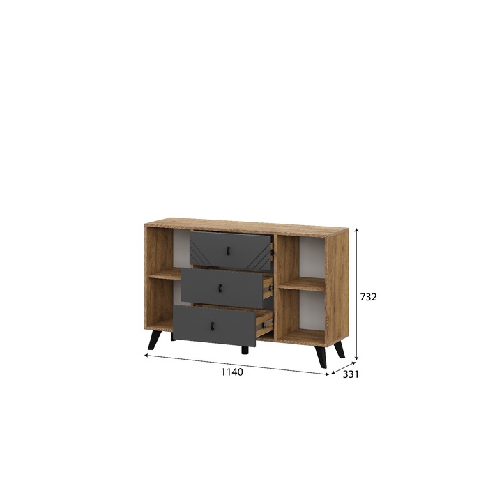 Комод с 3 ящиками 2 двери Байкал, 1140х331х732, Дуб золотой/Графит