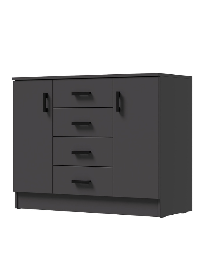 Компактное и вместительное решение для хранения вещей в современном интерьере. Комод выполнен в благородном оттенке графит, который придаёт мебели глубину и элегантность, позволяя ей органично вписаться в любой стиль — от минимализма до современной классики.