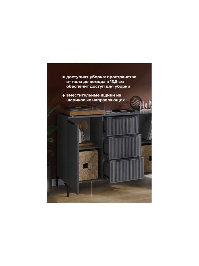Технические характеристики Комод напольный «Иадама», 1289×403×847 мм, цвет графит / графит софт