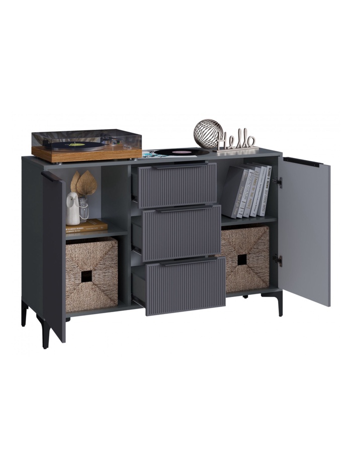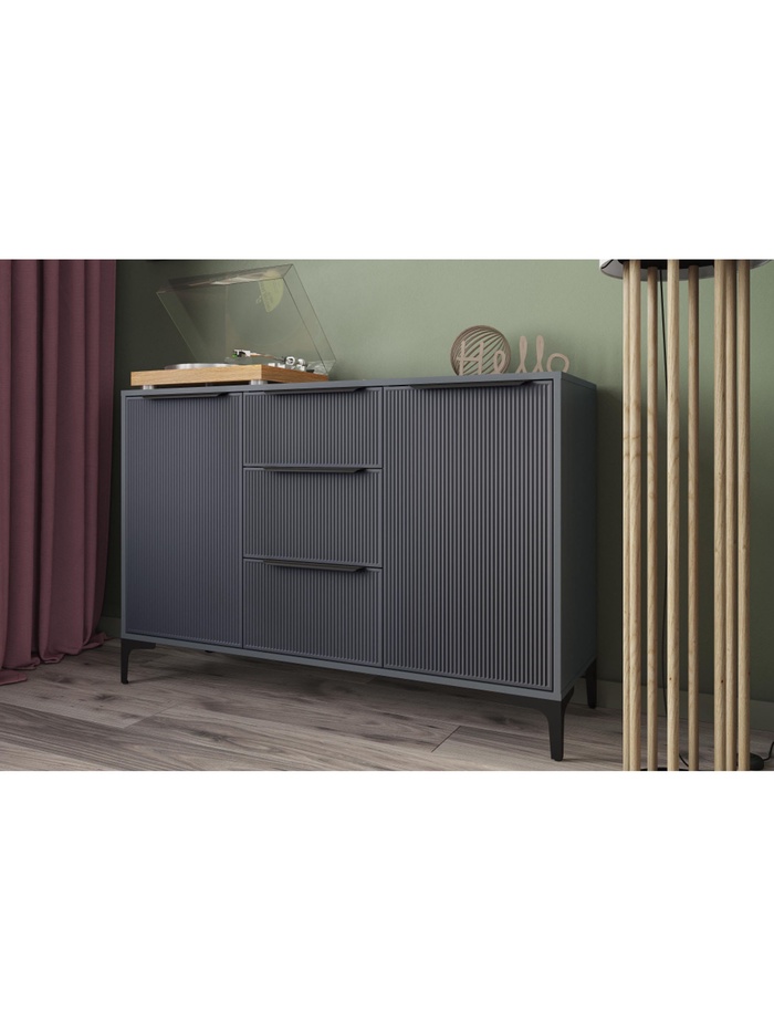 Комод «Иадама» в графитовом исполнении сочетает стильный современный дизайн с функциональностью. Ширина 128,9 см обеспечивает большой объём для хранения, а глубина 40,3 см позволяет компактно разместить его в спальне, гостиной или прихожей. Цвет графит софт придаёт мебели элегантный и сдержанный вид, гармонирующий с различными интерьерными решениями.