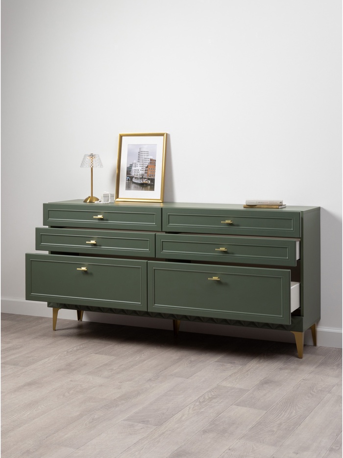 Комод «Марион» дымчатый зелёный / олива шагрень