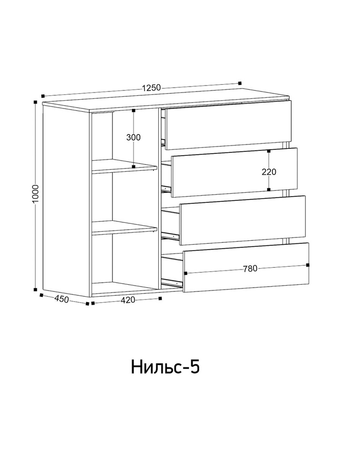 Технические характеристики Комод Нильс-5 дуб эльза / темно серый лофт