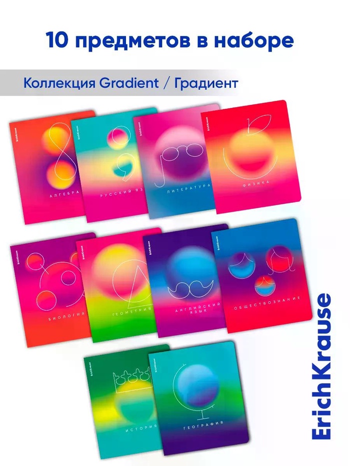 Технические характеристики Комплект тетрадей 36 листов в клетку/линейку ErichKrause Gradient, 10 штук