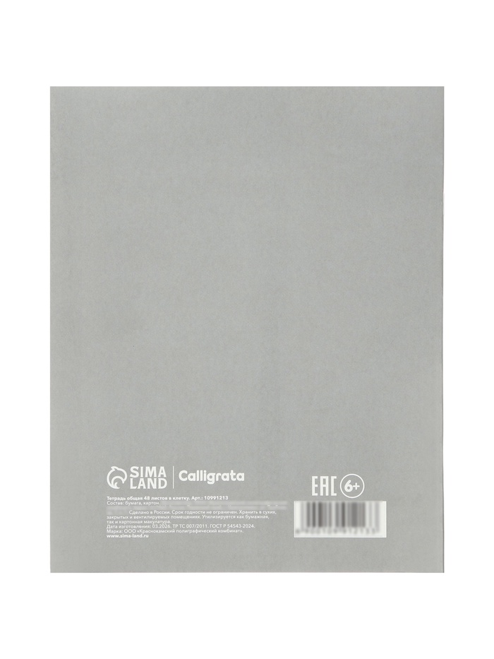 Технические характеристики Комплект тетрадей 48 листов в клетку Calligrata, 5 штук