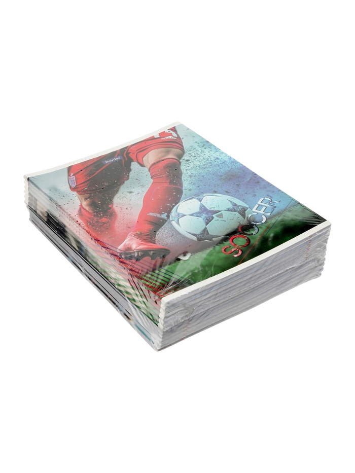 Обложки с футбольной тематикой добавляют энергии в учебные будни и помогают быстрее находить нужную тетрадь. Акценты выборочного лака подчёркивают детали дизайна, создавая выразительный визуальный эффект. Светлая бумага передаёт текст чётко — записи выглядят аккуратно, как в системно оформленном блокноте.