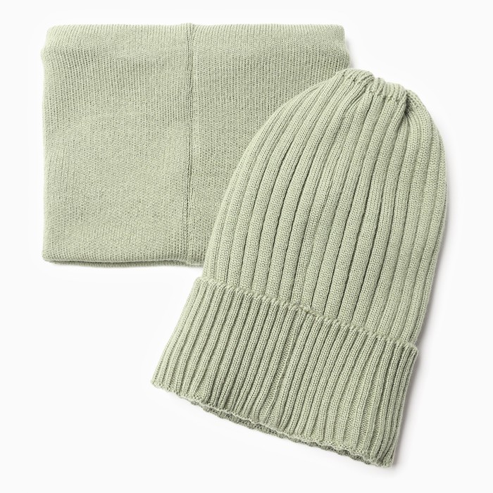 Комплект детский (шапка, снуд), цвет хаки, размер 48-52