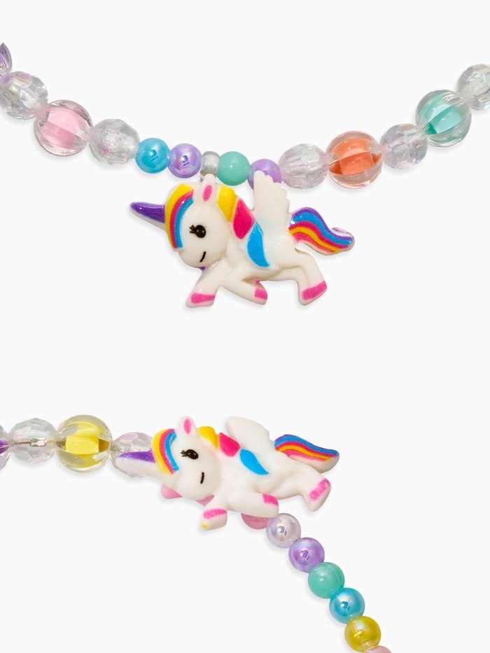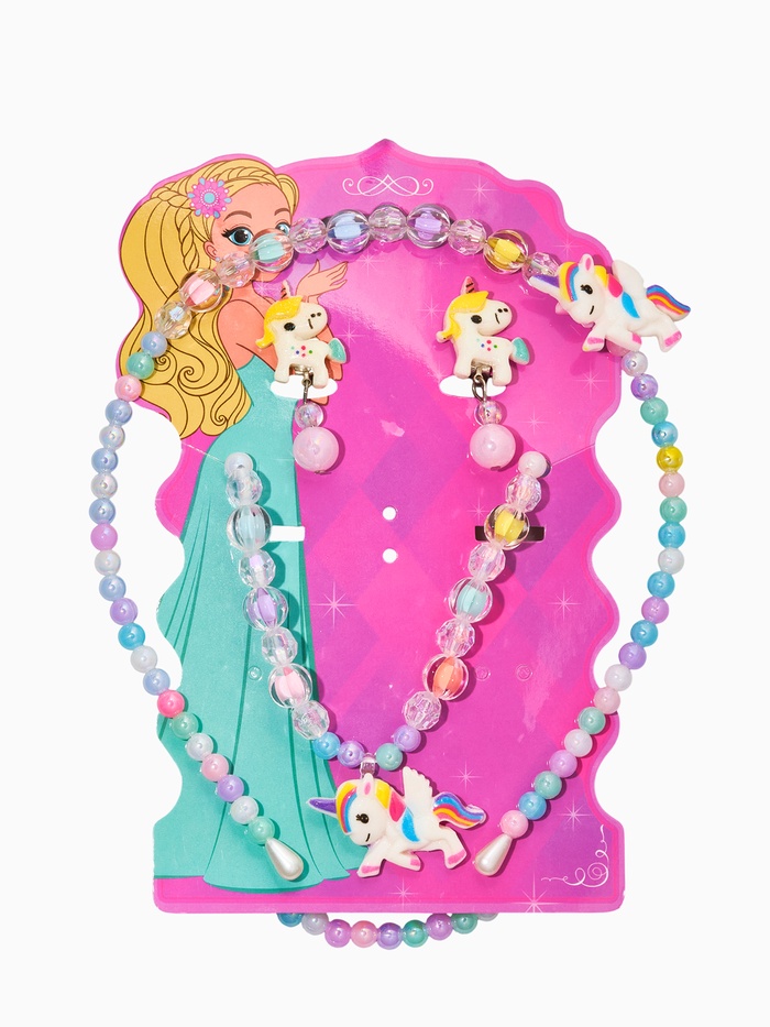 Узнайте секрет счастья и вдохновения вместе с ярким детским набором «Единорог». Набор включает три игровых аксессуара — клипсы, бусы и ободок, изготовленные в мультяшном стиле и способные порадовать каждую маленькую поклонницу волшебства и фантазий.