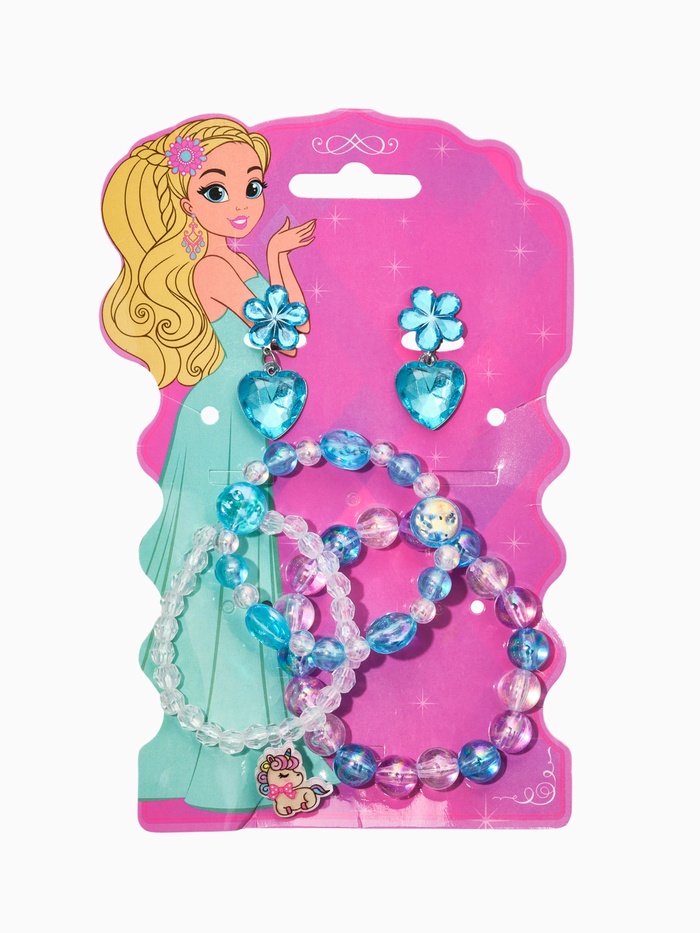 Комплект детский «Выбражулька. Единорог с сердцем», 4 предмета, 3 браслета: 1 клипсы, цветной