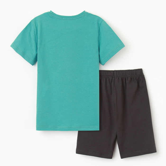 Комплект для мальчика (футболка, шорты), цвет зеленый/серый, рост 104