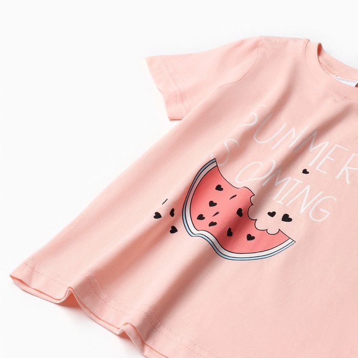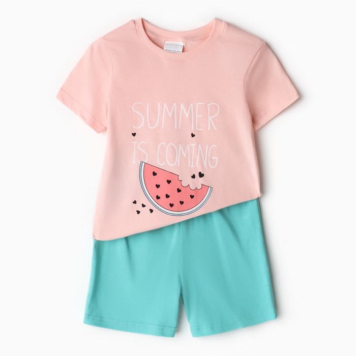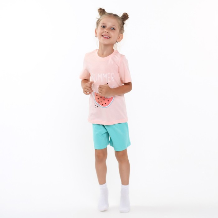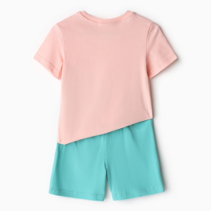 Комплект (футболка, шорты) для девочки, цвет персик/бирюзовый, рост 98-104 см (3 года)