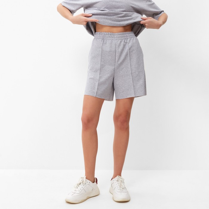 Комплект женский (футболка, шорты) MINAKU: Casual Collection, светло-серый, размер 48