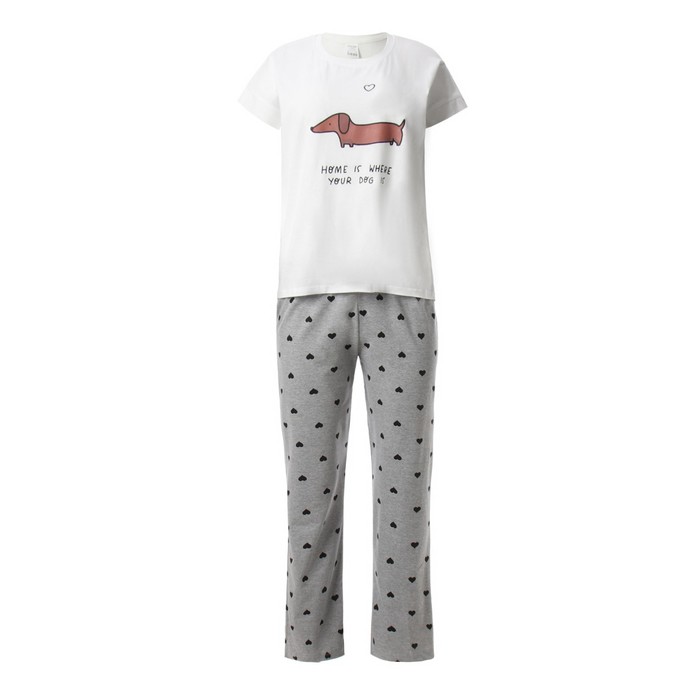 Комплект женский домашний «Такса» (футболка, брюки), цвет белый/серый, размер 50