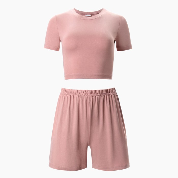 Комплект женский (футболка, шорты) MINAKU: Home collection цвет тёмно-бежевый, размер 48