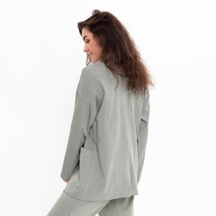 Комплект женский повседневный (жакет и брюки), хаки, размер 42