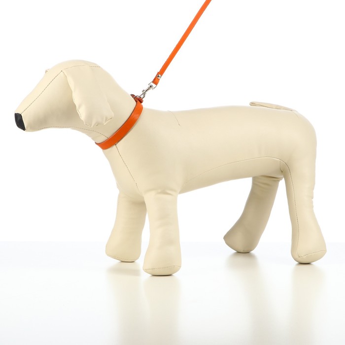 Комплект кожаный ошейник 35×1.2 см и поводок 135×0.8 см, рыжий